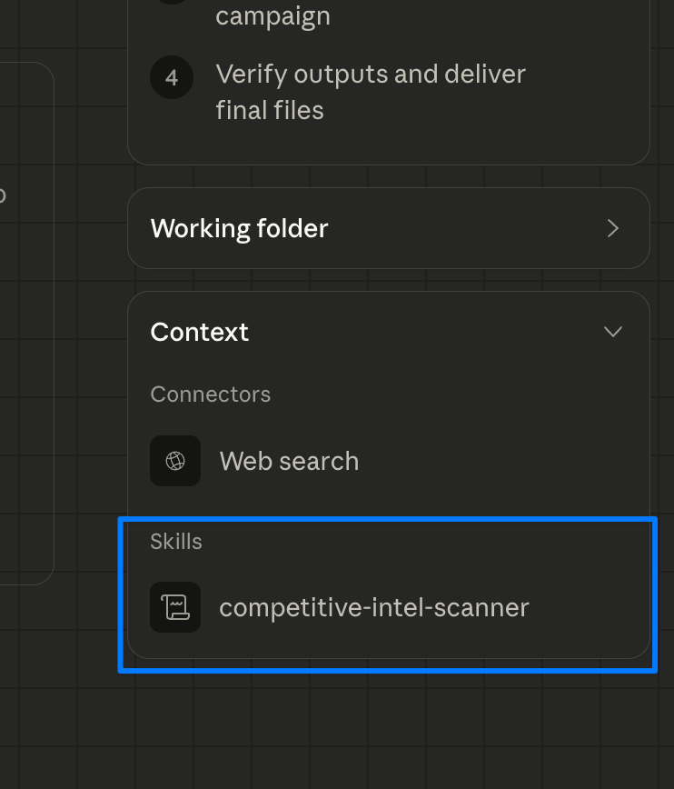 They’re essentially mini agents that are called up in your chats depending on what you’re working on. For example, if you’re building a campaign brief and you have a campaign brief skill, it’ll pull those instructions up and execute.