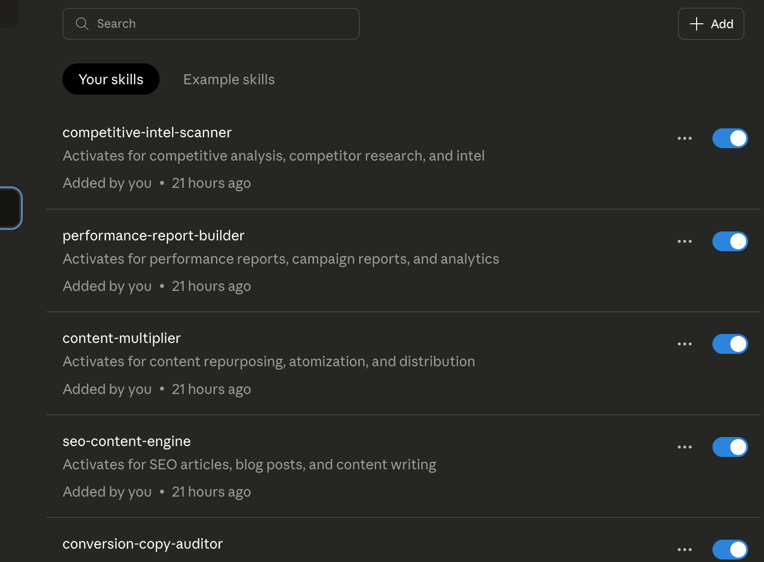 I’m looking to build on top of this with more Skills so that they can continue chaining and working together. Lifecycle, ad management, etc. As the founder of a lean team, I’m also very curious on how my other orgs can use these Skills across recruitment and operations. Is anyone interested in me writing about that? I know I mostly have folks reading because they want to get an inside look at my marketing mind, but let me know.