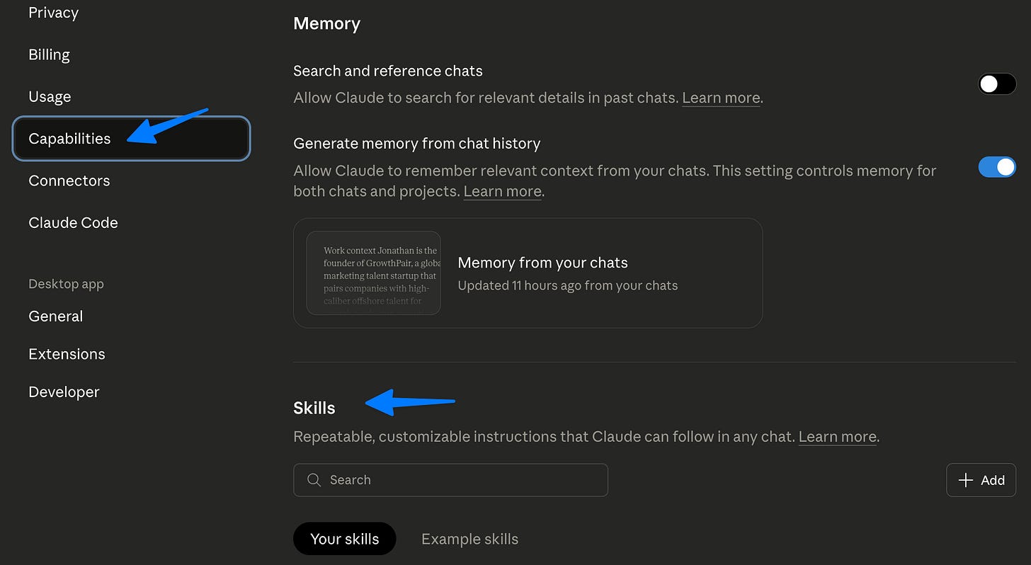 Over the last few weeks, I’ve been toying around with Claude’s Skills feature. They have it so hidden within the platform (see exhibit A lol) that I hadn’t even discovered it til recently.