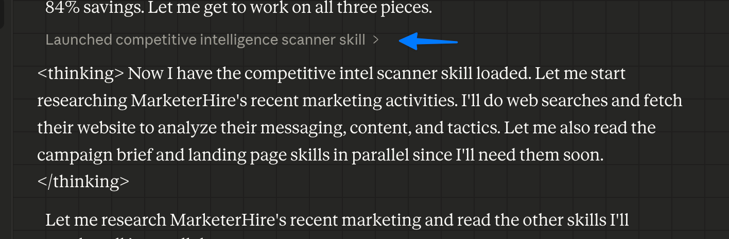 Where this gets real powerful is when you have 5-10 various skills loaded into Claude, and it starts chaining them together in its responses.